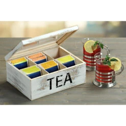 Items Theedoos – 6-vaks – White Wash – Hout – 24 X 16 X 7 Cm