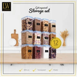 LW Collection Voorraadpotten 14 Stuks Met Stickers Witte Deksel