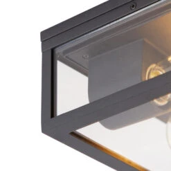 QAZQA Landelijke Buitenplafondlamp Zwart Met Glas IP44 – Elza
