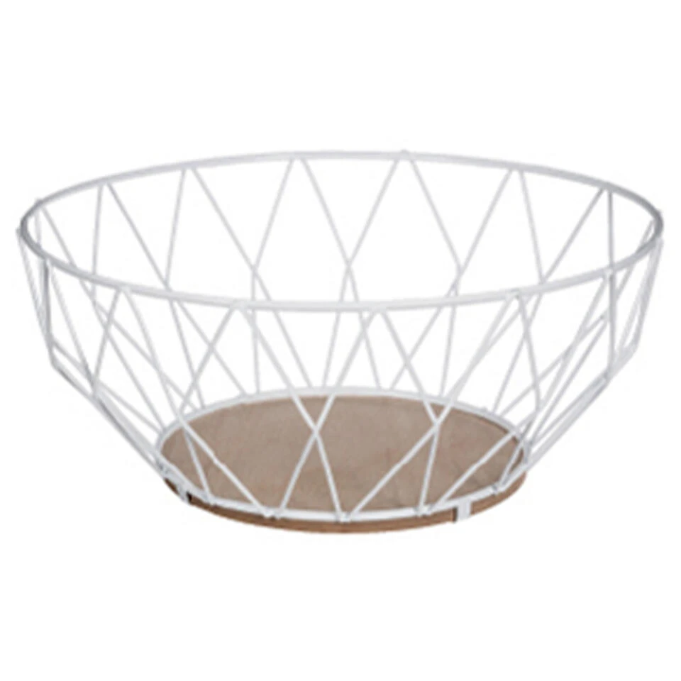5Five Fruitmand/fruitschaal, gemaakt van draad metaal en MDF hout in de kleur wit met Dia 28 cm. De opengewerkte rand/wand zorgt voor een constante luchtcirculatie waardoor het fruit minder snel overrijp is. Afmetingen: 28 x 11.5 cm. Materiaal: metaal. Reinigen: afnemen met een vochtige doek.