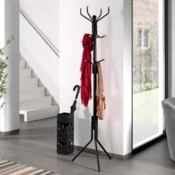 Voorts koppelt deze staande kapstok een strak design aan een degelijke stabiliteit en een minimum aan onderhoud. Ondanks dagelijks gebruikt volstaat reiniging met behulp van een zachte doek Met drie gespreide, opstaande poten beschikt je over een efficiënte en goedkope oplossing voor uw verzameling jassen, tassen en hoeden. Eén geschikte ruimte heeft deze kapstok niet echt, u kan hem plaatsen in een kamer, inkomhal of een schijnbaar verloren hoekje!