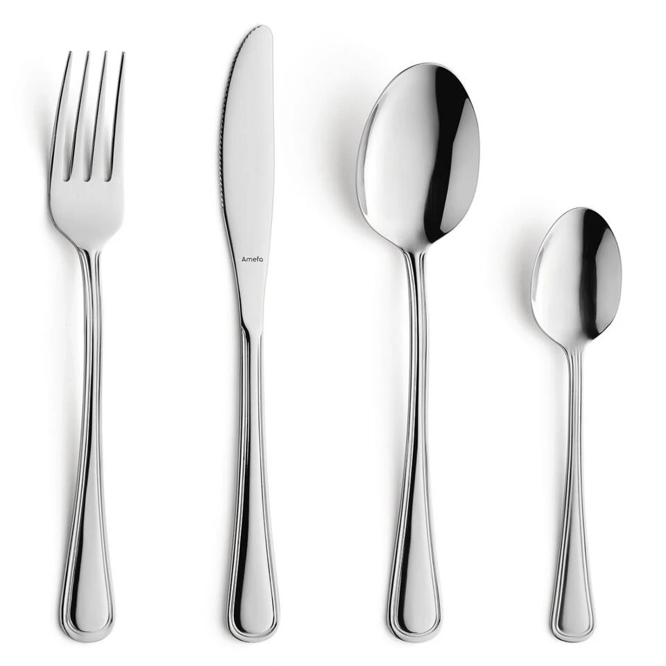 Elke gedekte tafel ziet er nog mooier uit met deze Bologna bestekset van Amefa. Deze eigentijdse bestekset bestaat uit 24 roestvrijstalen onderdelen: 6 tafelmessen, 6 tafelvorken, 6 eetlepels en 6 medium theelepels. De delicate lijnen en decoratie op elk stuk geven de set een traditionele uitstraling. Elke Amefa set is vaatwasmachinebestendig en het roestvrij staal biedt een hoge corrosieweerstand. Amefa bestek is een prachtige aanvulling op elke eetgelegenheid en is de ideale combinatie met ander bestek.