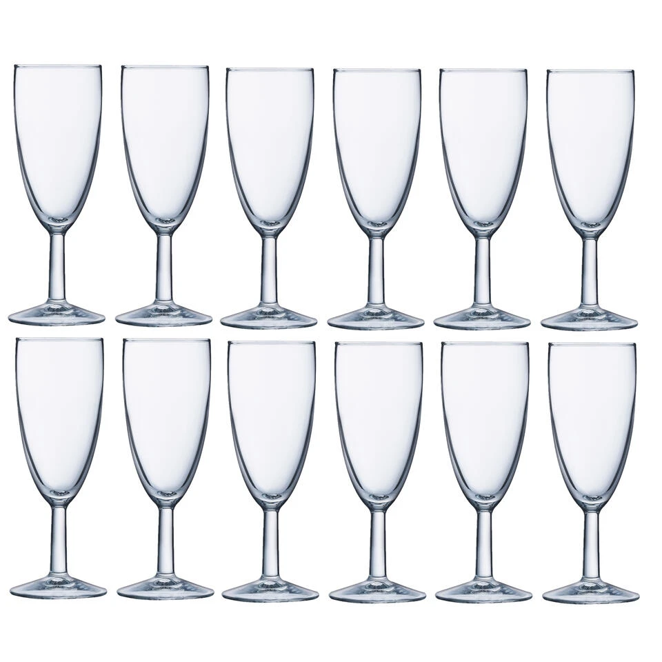 Set van 12x stuks champagneglazen transparant. Deze glazen zijn geschikt voor bijvoorbeeld cava, champagne of andere mousserende wijn. Inhoud: 150 ml (15 cl). Materiaal: glas. Geschikt voor: vaatwasser.