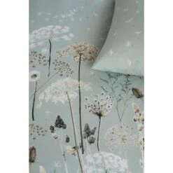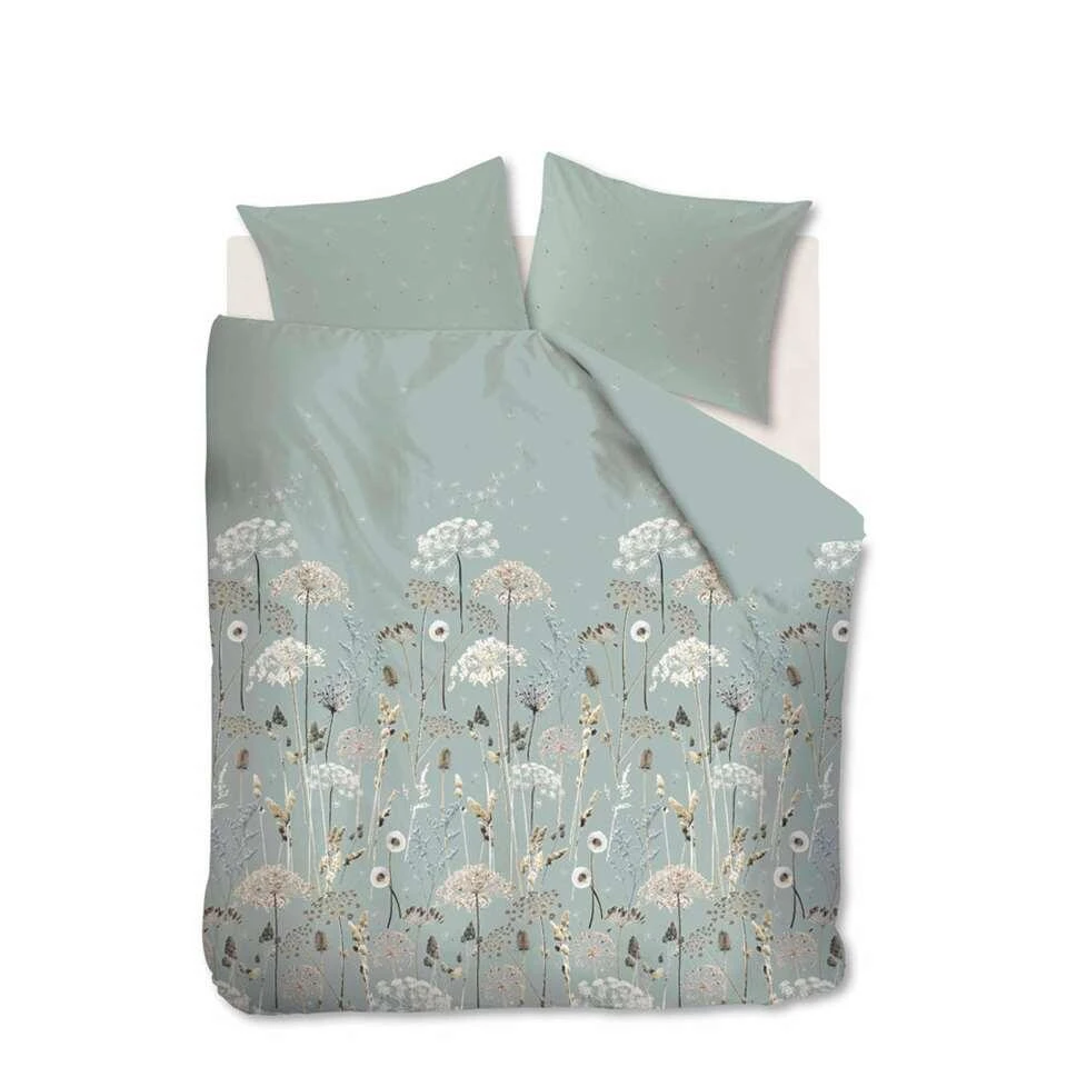 Ariadne at Home dekbedovertrek Wind wordt gesierd door verschillende gedroogde veldbloemen in diverse natureltinten tegen een zachtgroene achtergrond. Aan de bovenkant van het overtrek dwarrelen de pluisjes van een paardenbloem, waardoor het overtrek een luchtige, frisse uitstraling heeft. Het dekbedovertrek is gemaakt van 100% katoen. Katoen is een natuurlijk product dat goed ademt en vocht opneemt. De totale afmeting van dekbedovertrek Wind is 240×200/220 cm. Het overtrek kan gewassen worden tot 60 graden, is geschikt voor de wasdroger en kan gestreken worden.