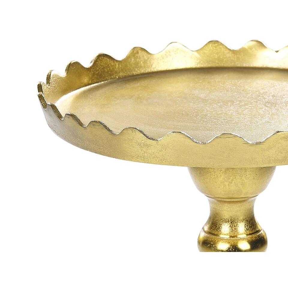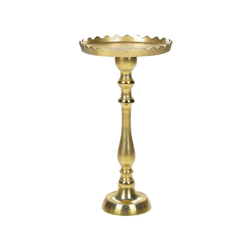 Ronde bijzettafel. Voeg een vleugje glamour toe aan je interieur met deze bijzettafel met accent. Het dienbladvormige blad kan worden gebruikt als plek voor afternoontea of als plek voor het uitstallen van decoraties. De sierpoot van het stuk en de glanzende afwerking in goud creëren het luxe gevoel van het meubel.