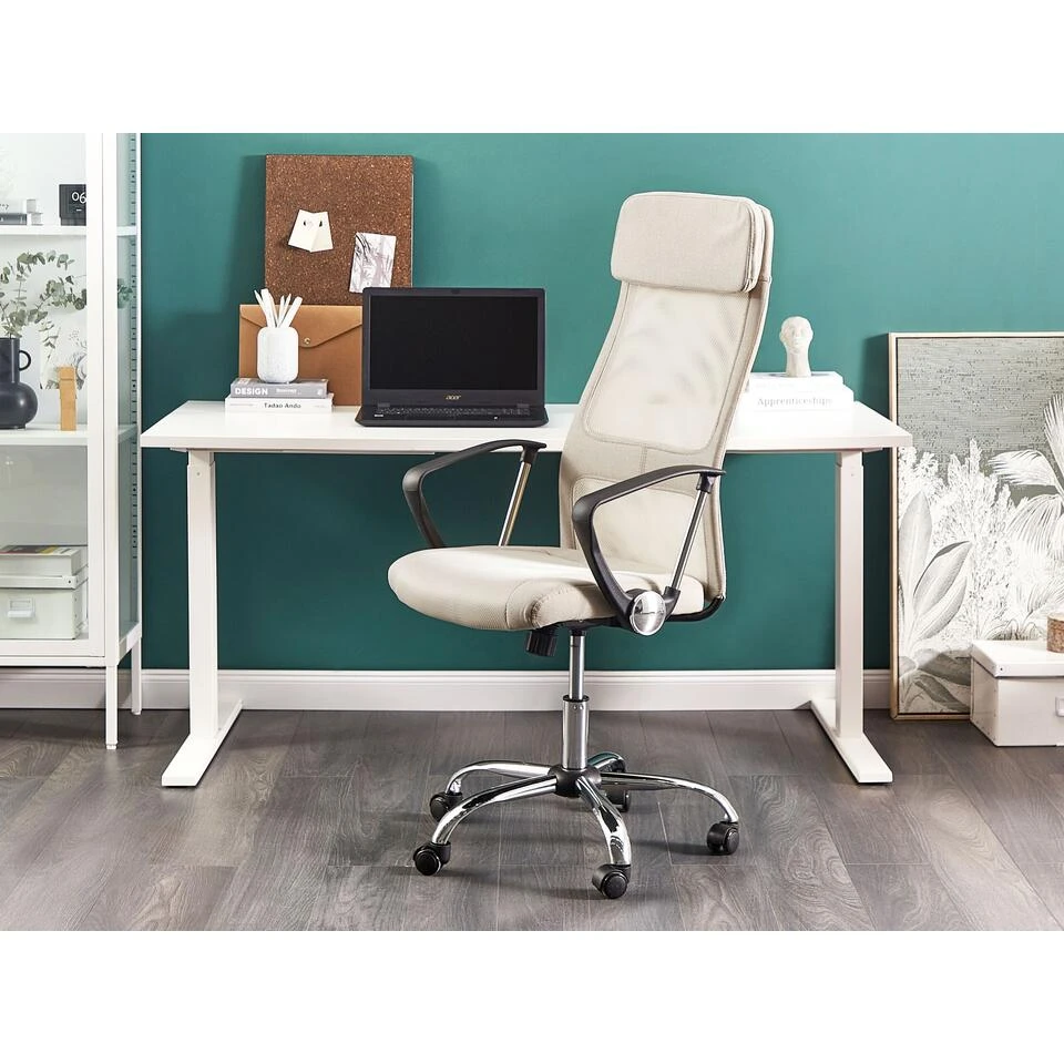 Ergonomische computerstoel. Deze stijlvolle en functionele kantoorstoel is een must-have voor elke werkruimte. Hij is voorzien van een verstelbare rugleuning, in hoogte-verstelbare zitting en draaifunctie. Daarnaast is de stoel gestoffeerd met duurzame stof in de klassieke kleur met bijpassend mesh van polyester, ademend en slijtvast. De hoge rugleuning is voorzien van een geïntegreerde hoofdsteun voor optimale ondersteuning van het hele lichaam.