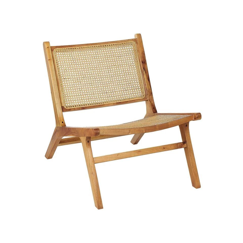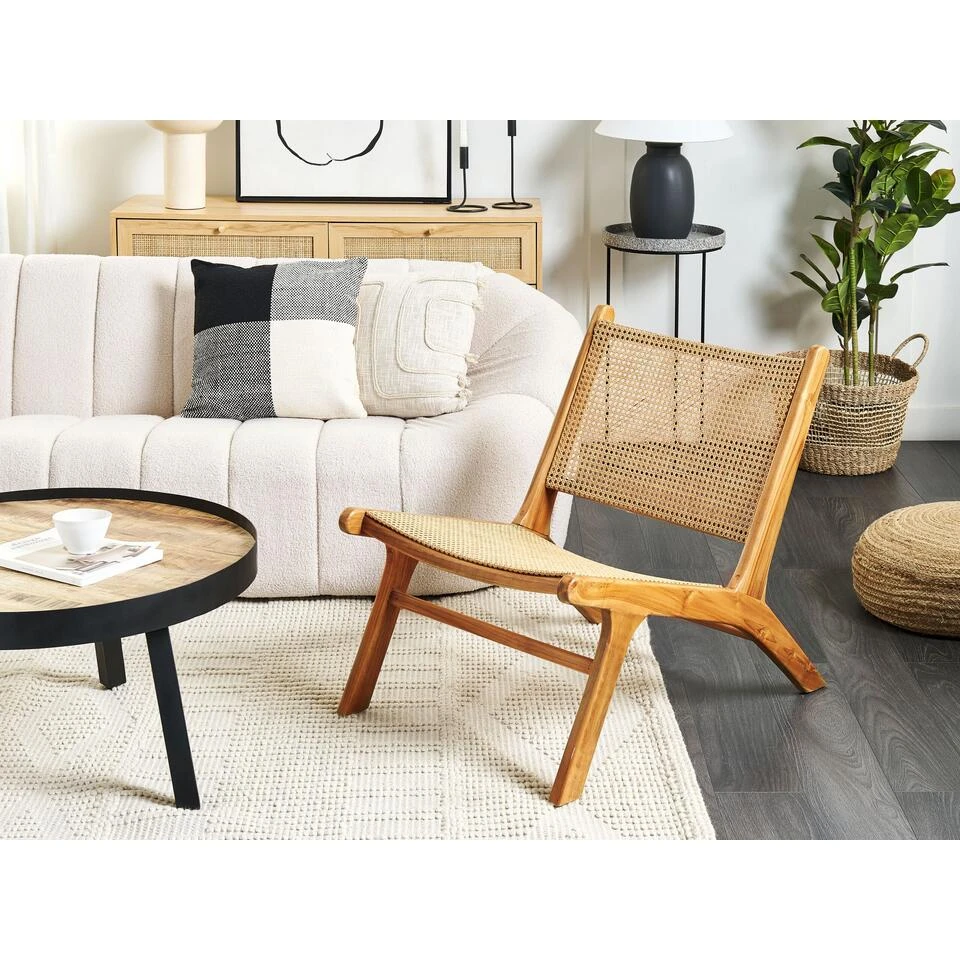 Houten stoel met gevlochten accent. Deze stoel is een ware eye-catcher die in één klap een pronkstuk wordt in elk interieur. Het product is gemaakt van hoogwaardig mahoniehout, dat duurzaam is en de stabiliteit van het stuk garandeert. De prachtige natuurlijke kleur met zichtbare nerven en de decoratieve Weense vlechtwerk van rotan creëren een mooi boho-gevoel dat elke ruimte zal verlevendigen.