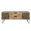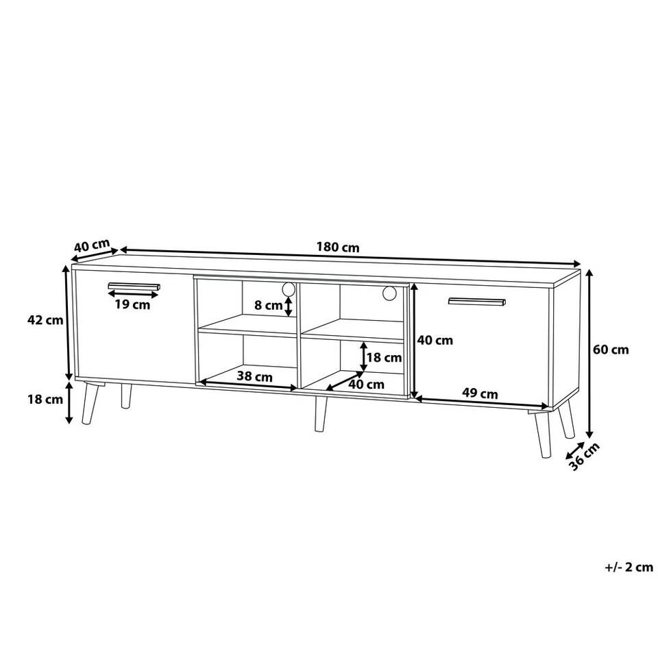 Veelzijdig lowboard in een modern ontwerp. Elke woonkamer heeft een goede tv-meubel nodig – eentje die zowel het uiterlijk als de functionaliteit heeft, is dan ideaal! Open rekken bieden een geweldige plek om jouw mediacomponenten of decoratie weer te geven, terwijl twee afsluitbare kasten een plek bieden om ‘rommel’ te verbergen. Twee handige uitsparingen maken het gemakkelijk om kabels weg te stoppen onaangeroerd te houden. De lichte houtafwerking maakt het een perfect complementair stuk voor traditionele interieurs met een moderne twist.