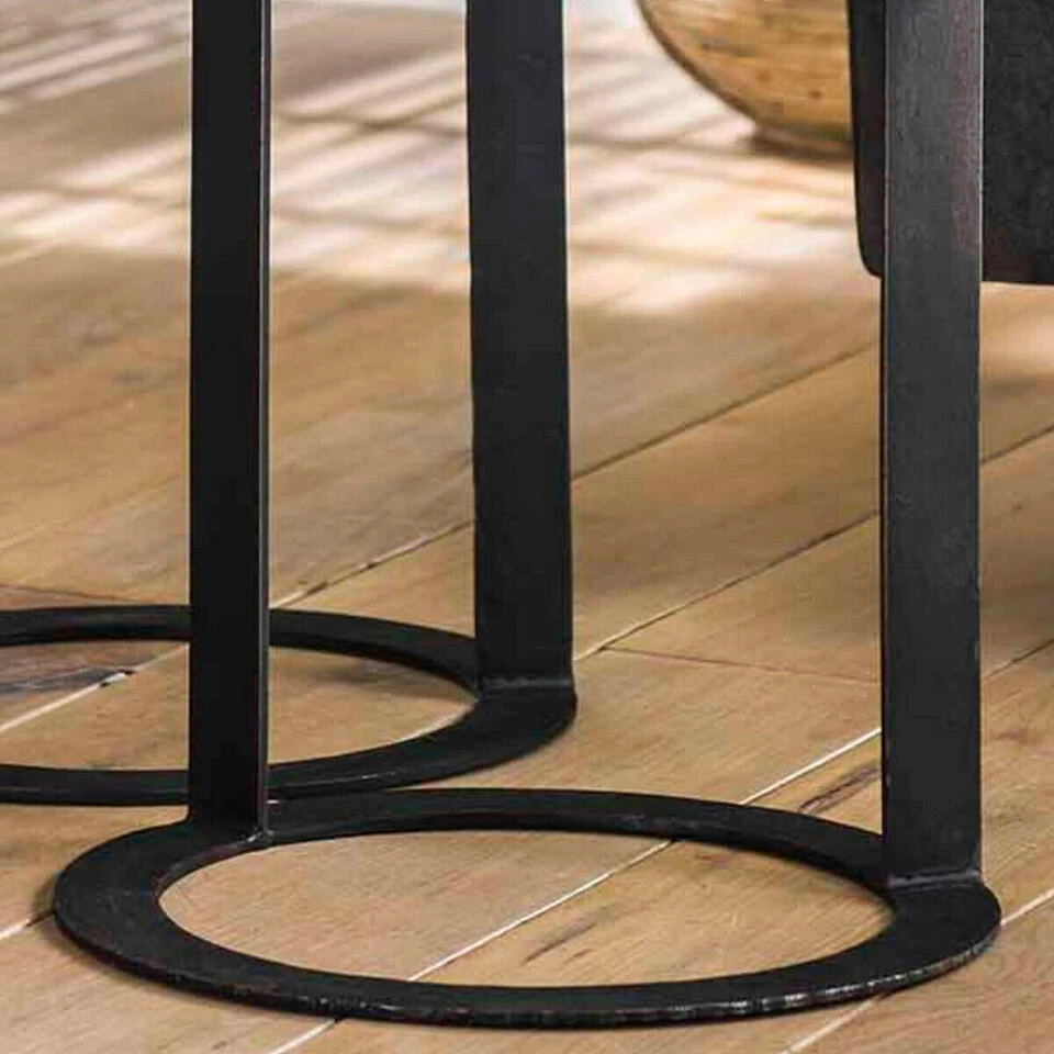 Geef uw interieur een stoere en natuurlijke look met bijzettafelset Roger! Deze gave bijzettafels komen uit de collectie van het woonmerk Fraaai en hebben verschillende afmetingen. Elk exemplaar is uitgerust met een stevig metalen onderstel, dat als afwerking een ruwe en oneffen look heeft gekregen. Op elk onderstel rust een prachtig hardhouten tafelblad met een robuuste uitstraling voor een natuurlijke finishing touch. Plaats bijzettafelset Roger in de woonkamer of hal en gebruik ze ook eens samen als salontafel. Combineer deze set ook met de andere matchende Roger plantentafels, salontafels of bijzettafels voor één geheel in uw interieur. Afmetingen Bijzettafel Klein (BxDxH): 35x35x45 cm Bijzettafel Middel (BxDxH): 35x35x50 cm Bijzettafel Groot (BxDxH): 35x35x55 cm