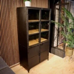 Achter de glazen deuren is er ruimte om mooie spullen te plaatsen. Verder kleed je de kast aan door er bijvoorbeeld een plant of een sculptuur op te plaatsen. Zoek een mooie vloerlamp die de kast nog meer allure geeft. En combineer de kast bijvoorbeeld met een plantenzuil en een vloerkleed. Zet deze kast gerust in de picture, ze kan het aan!