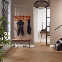 Maak uw hal of slaapkamer helemaal af met deze natuurlijke en rustieke Carter wandkapstok! Deze kapstok is gemaakt van stevig massief acaciahout en is voorzien van een fijne nerf en verschillende noesten, waardoor hij zijn unieke uitstraling krijgt. De stoere haken zijn gemaakt van zwart geschuurd metaal en vormen een mooi contrast met het hout. Dit model heeft 6 haken met twee ophangmogelijkheden, maar hij is ook verkrijgbaar met 5, 8 of 2×3 haken. Tevens is hij verkrijgbaar in een variant met hoedenplank met en zonder haken.