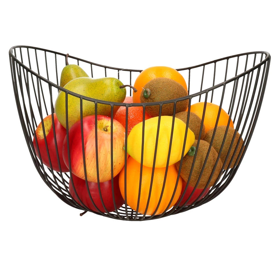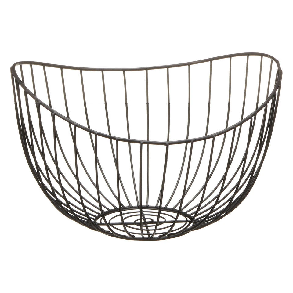 Metalen fruitmand/fruitschaal zwart rond 26 x 17 x 24 cm. De open rand/wand zorgt voor een constante luchtcirculatie waardoor het fruit minder snel overrijp is. Materiaal: metaal. Reinigen: afnemen met een vochtige doek.