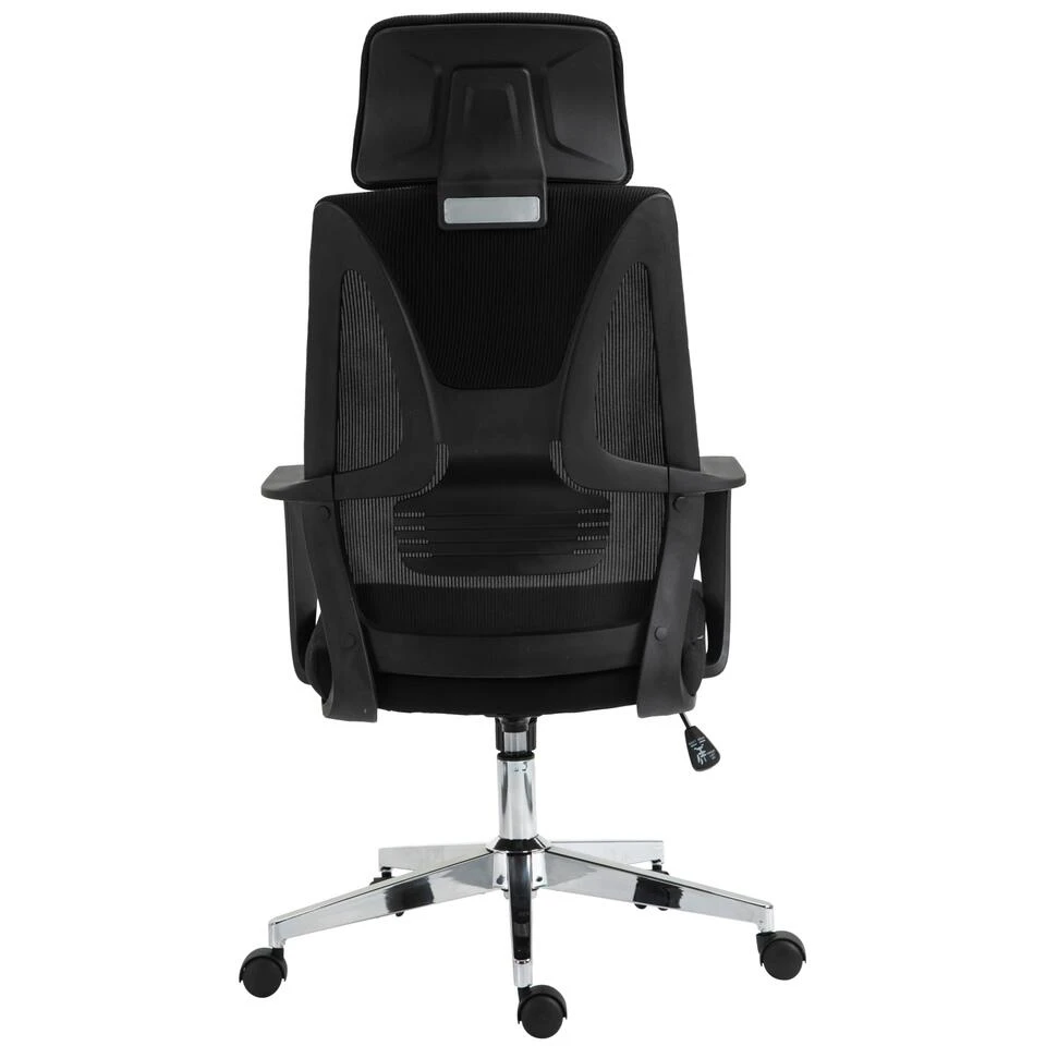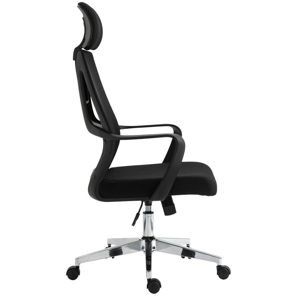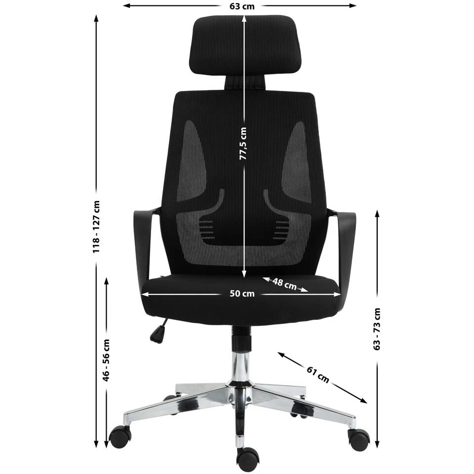 Deze moderne bureaustoel overtuigt door zijn lendensteun en de rugleuning met geïntegreerde hoofdsteun. De hoogte van de hoofdsteun kan worden aangepast aan het lichaam. Het rug gedeelte heeft een aangenaam mesh materiaal en biedt dus zowel comfort als ademend vermogen. Deze bureaustoel kan in hoogte worden versteld voor een comfortabele zithouding. Met de 5 licht lopende wielen en het stevige metalen frame in chroomlook biedt de draaistoel de mogelijkheid om flexibel te bewegen.