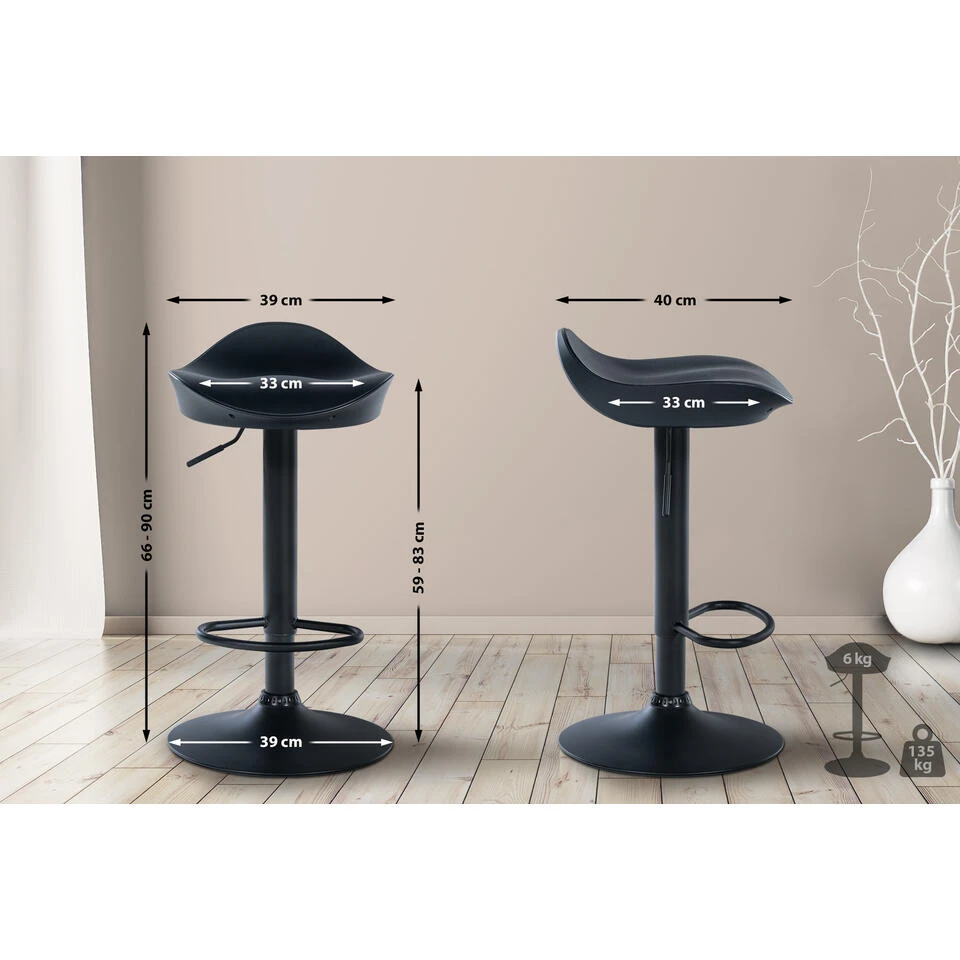 De ergonomische vorm nestelt zich perfect tegen het lichaam en de stoelbekleding van zacht, gestructureerd kunstleer zorgt voor een aangenaam zitoppervlak. De traploos instelbare gaslift maakt deze barstoelen geschikt voor alle baliehoogten en biedt een universeel toepasbare oplossing. Dankzij de geïntegreerde voetsteunen kunt u uw voeten comfortabel plaatsen en de 360° draaibare zittingen zorgen ervoor dat u urenlang comfortabel kunt zitten. De kunststof oppervlakken van de barkrukken zijn gemakkelijk te reinigen en de metalen trompetpoten geven deze meubelstukken een elegante uitstraling. Een rubberen ring op de poten van de barkrukken voorkomt beschadiging van de vloer.