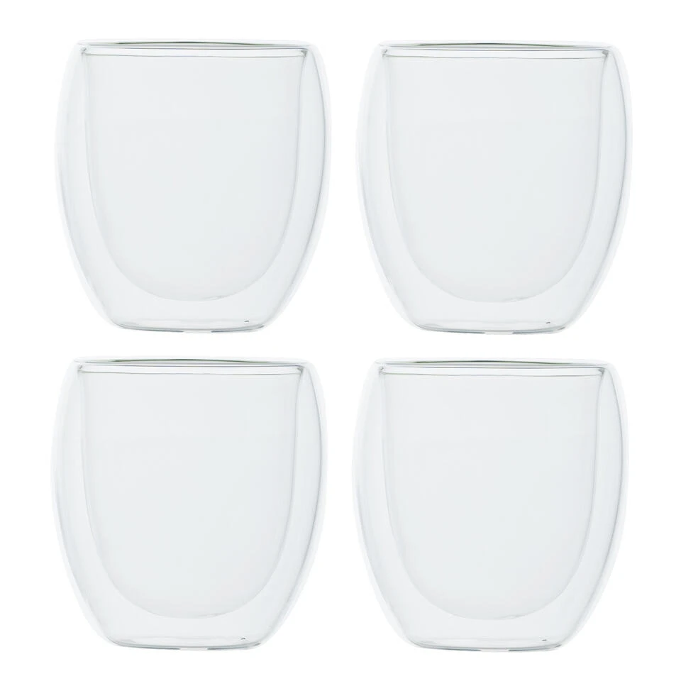 Dubbelwandige cappuccinoglazen van het merk isolate Met een inhoud van 0,3 liter hebben deze glazen de juiste inhoud voor een mooie cappuccino. Dit product bestaat uit een set van 2. Door de dubbele wand hebben dubbelwandige glazen een isolerende functie. Hierdoor blijft de inhoud langer warm. Of bij koude dranken langer koud. De glazen zijn gemaakt van borosilicaat glas.