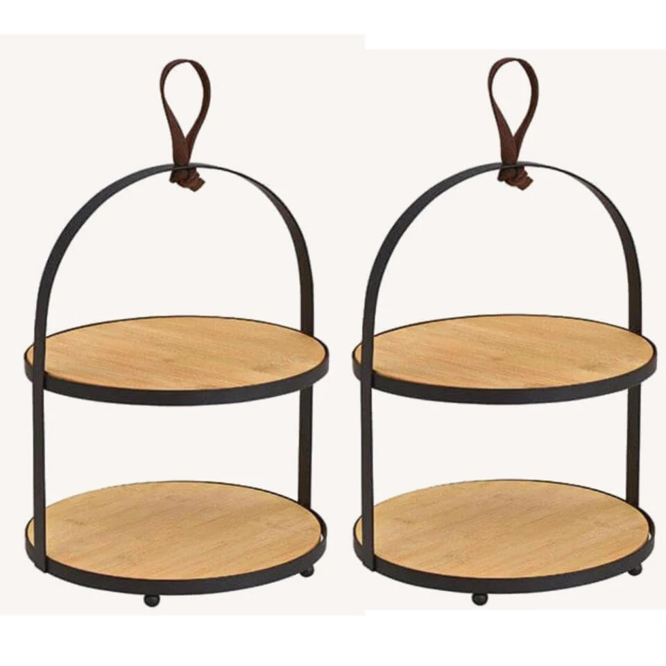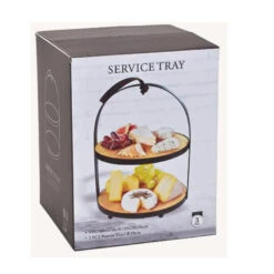 Etagere 2-laags van bamboe. Ronde etagere met bamboehouten planken/platen. Geschikt voor het serveren van zowel koude als warme gerechten. Ideaal voor het presenteren van kleine hapjes (tapas) of taartjes. Ook uitermate geschikt als kaasplankje/borrelplankje, high tea serveerplateau of om ingredienten voor fondue/gourmet op te presenteren. De kleur kan iets afwijken omdat dit een natuurproduct betreft. Reinigen: Met de hand wassen, goed nadrogen met een theedoek.