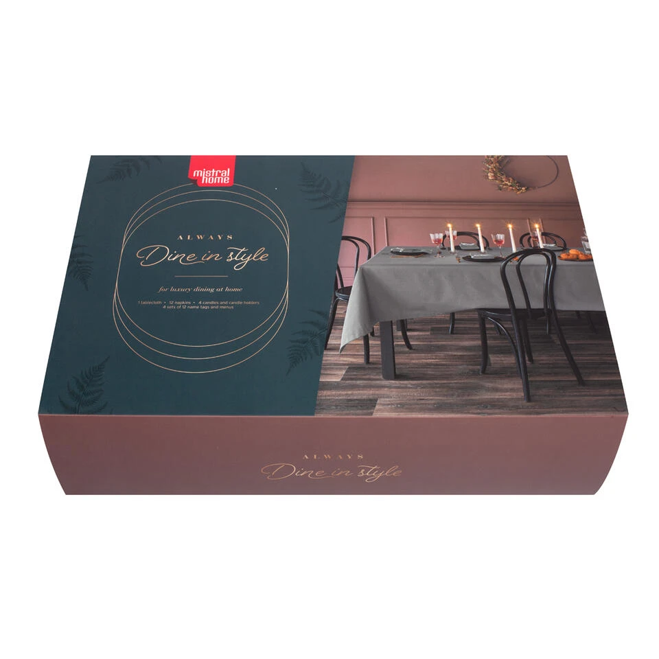 Ben je op zoek naar een housewarming gift, een leuk Kerst cadeau of heb je een etentje gepland maar zoek je nog een mooi tafellaken met bijpassende decoratie? Dan is onze giftbox tafellinnen de oplossing!