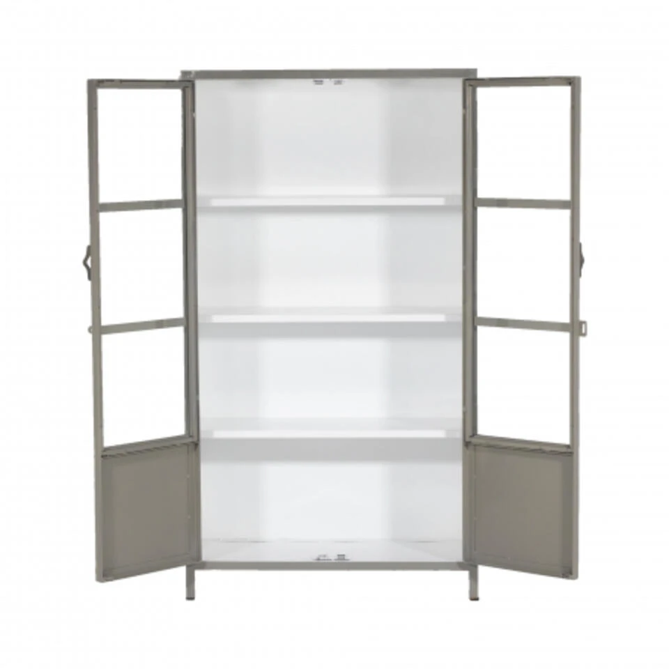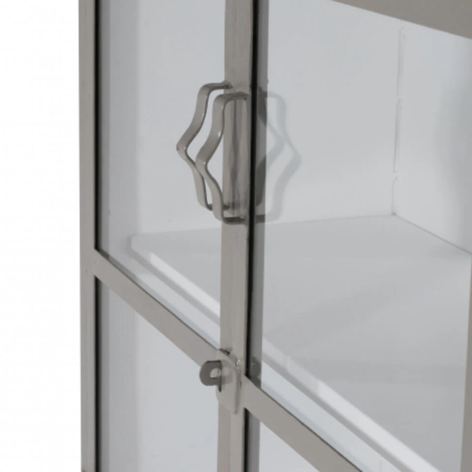 Alle woon- en eetkameritems plaats je meteen in deze vitrinekast. Jouw meest favoriete items kunnen mooi achter het glas tentoon gesteld worden. Alles wat je liever geborgen houdt zet je in het onderste gedeelte. De kast biedt genoeg ruimte voor jouw mooiste spullen. De vitrinekast is 100 cm breed en samengesteld uit 4 schappen en 2 deuren met glas. Dit model bestaat uit 1 stuk en is gemaakt van metaal. Hiermee creëer je met de kast een industrieel effect in jouw woonkamer of keuken.