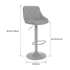 De ROBIN barkruk is een stijlvolle aanwinst voor uw keuken of eetkamer. Met zijn donzige fluwelen bekleding, mooie ruitvormige stiksels en moderne zwarte metalen voet, verbetert hij in een oogopslag de inrichting van de kamer. De zitting is opgevuld met schuimrubber en heeft een rugleuning die uw comfort voor elk moment van de dag verhoogt. Geniet van de 360 graden draaibare zitting en de voetensteun voor extra steun. Deze hoge kruk kan ook in hoogte worden versteld, zodat u hem naar wens kunt aanpassen aan uw bar, hoge tafel of keukeneiland.