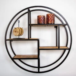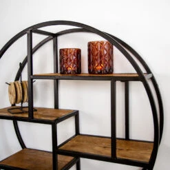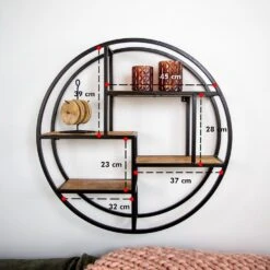Het frame van het ronde wandrek is gemaakt van metaal. De zwarte kleur in combinatie met het hout, past erg goed bij de hedendaagse interieurtrends en geeft het rek zijn stoere en industriële uitstraling.