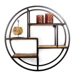 Het frame van het ronde wandrek is gemaakt van metaal. De zwarte kleur in combinatie met het hout, past erg goed bij de hedendaagse interieurtrends en geeft het rek zijn stoere en industriële uitstraling.