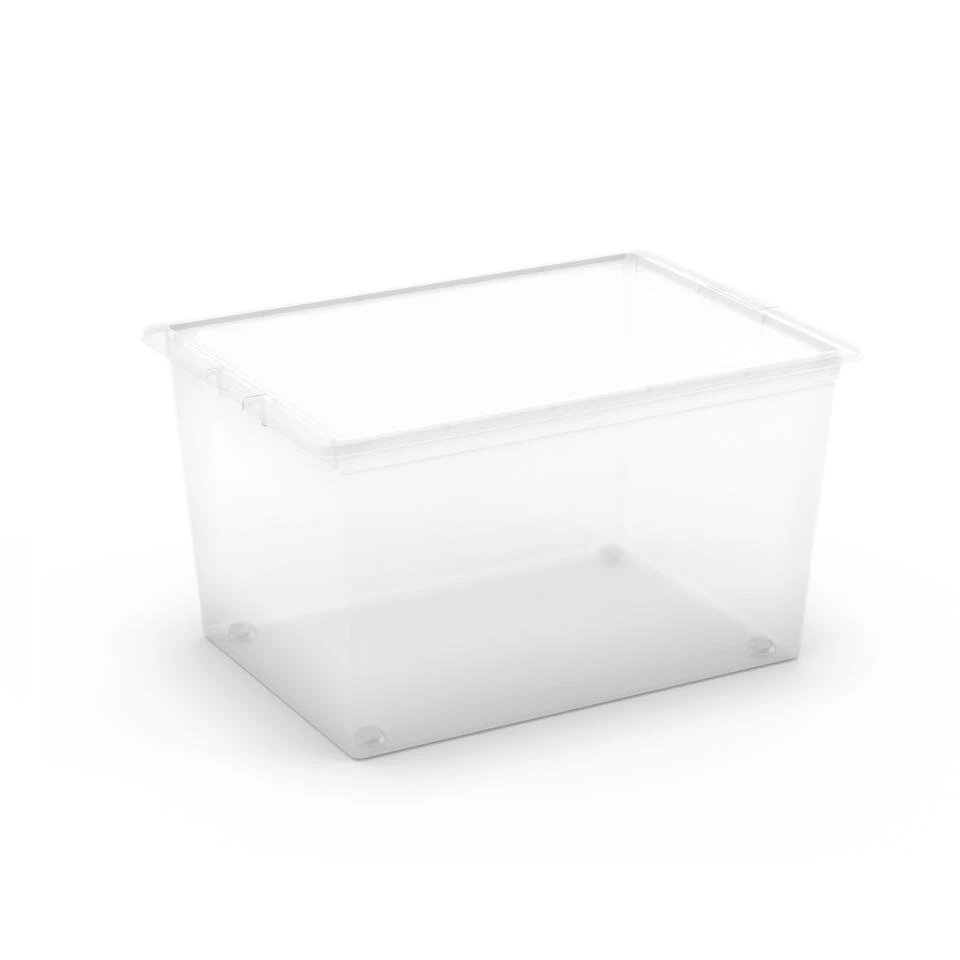 Grote, transparante, kunststof opbergbox met deksel en met praktische wieltjes. Wendbaar en verplaatsbaar, is deze opbergdoos onmisbaar voor het opbergen van kleding bij het wisselen van de seizoenen en het efficiënt organizeren van de klerenkast.