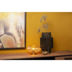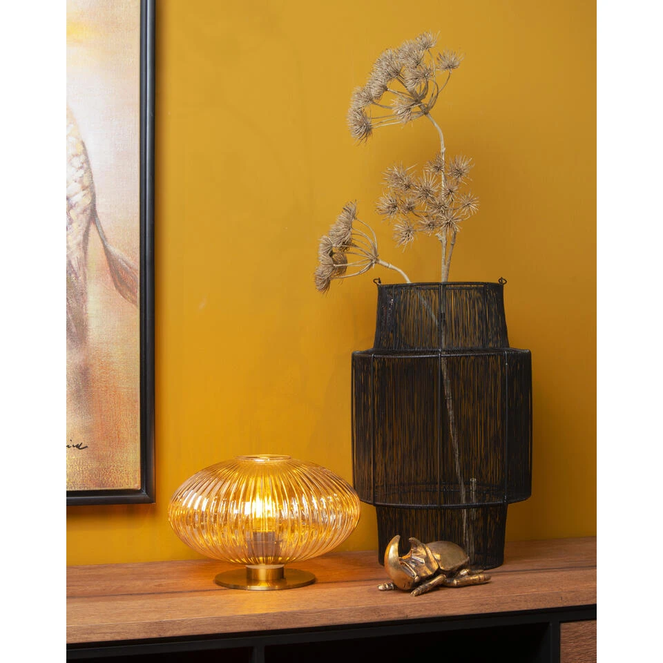 De klassieke look van Virgil vindt een plaatsje in ieder interieur. De combinatie van een mat gouden voet met een amberkleurige glazen kap maakt van deze tafellamp een warm en sfeervol ontwerp. Zeker in combinatie met de juiste led filament lamp. Deze variant is wat lager en ovaalvormig. Met een hoogte van 20 centimeter is Virgil ideaal om een hoekje op te vullen en te belichten. Aan- en uitschakelen doe je eenvoudigweg met de schakelaar op het snoer.