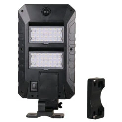 De intelligente Security solar wandlamp Concordia is met recht een power lamp te noemen! De kunststof lamp is voorzien van 56 warm witte SMD-LEDs die over 2 scharnierbare LED-panels verdeeld zijn. De lamp heeft een bewegingssensor die geactiveerd wordt binnen een bereik van 8 mtr afstand. Wanneer deze is geactiveerd zal de lamp in totaal 1000 lumen licht afgeven. De perfecte lamp om de omgeving van oprit of pand duidelijk te verlichten. Bij de levering is een wandbevestigingsplaat met schroeven en pluggen inbegrepen. De lamp kan eenvoudig over deze wandbevestigingsplaat geschoven worden. Om het compleet te maken kan de lamp ook om een paal bevestigd worden met behulp van de bijgeleverde u-beugel met bijbehorende vleugelmoeren. De lamp is vanaf de wandbeugel scharnierbaar waardoor deze op verschillende standen toepasbaar is.