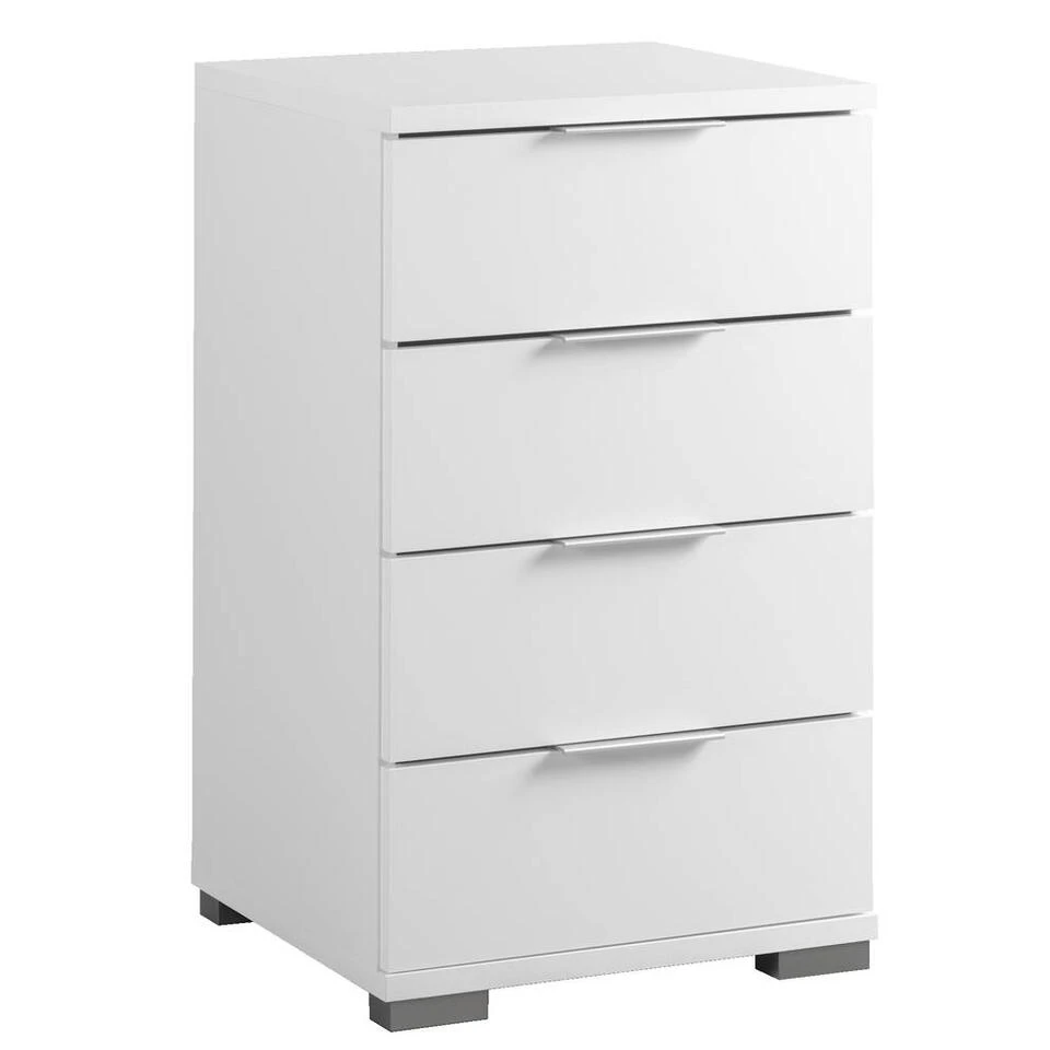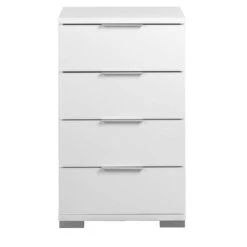 Nachtkastje Valencia is een stijlvol kastje voor in de slaapkamer. Dit kastje is wit van kleur en gemaakt van spaanplaat. Dit kastje heeft 4 ruime lades voor het opbergen van allerlei handige spullen. Bovenop kan een nachtlampje, wekker of andere accessoires worden gezet. De totale afmeting (hxbxd) van dit kastje is 79x46x42 cm.Â