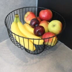Deze fruitmand van Orange85 heeft een luxe uitstraling. De mand is gemaakt van metaal en heeft een zwarte kleur. Doordat er genoeg zuurstof bij het fruit kan komen, bederft het fruit minder snel. De schaal heeft een diameter van 28 cm en een hoogte van 18.5 cm.