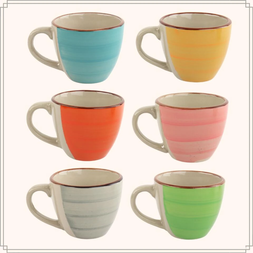 Zes espresso kopjes van OTIX. De set is gemaakt van aardewerk en de kopjes hebben allemaal een verschillende kleur. De kopjes zijn ideaal om espresso’s uit te drinken. De kopjes hebben een inhoud van 90 ML. De kopjes zijn van klein formaat.
