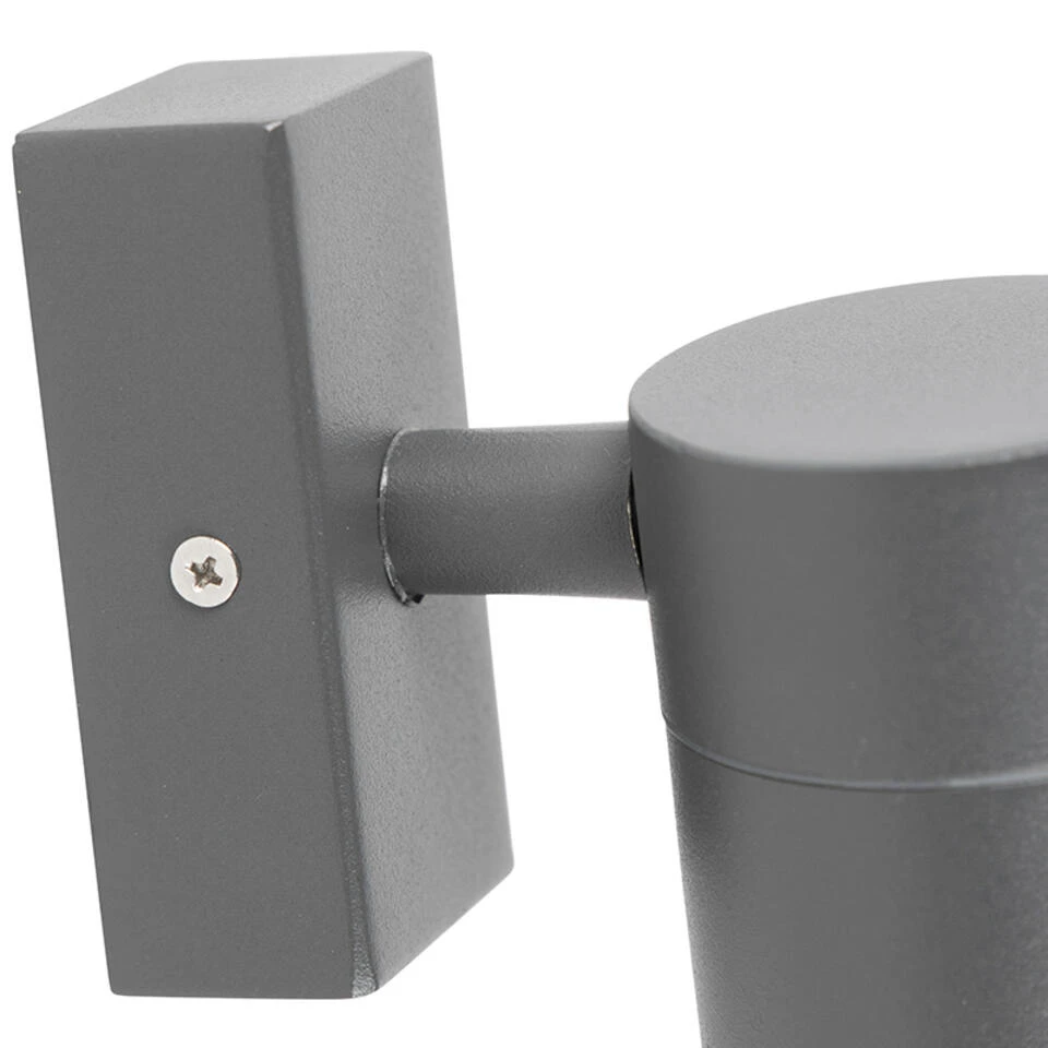 Deze wandlamp Duo is een super functionele buitenlamp met strakke vormgeving uitgevoerd in donker grijs (antraciet). Het licht van deze lamp straalt naar beneden. Dit geeft een prachtig effect op de muur. Met een IP waarde van IP44 kan deze wandlamp tegen de regen. Ook is hij gemakkelijk aan te sluiten op 230 volt. De lamp heeft een diepte van 11,5 cm en een hoogte van 12 cm. De montageplaat heeft een lengte van 8,5 cm en een breedte van 4,5 cm. De lamp heeft een GU10 fitting en wordt exclusief lichtbron geleverd, zorg dat je deze er dus nog bij besteld (max. 35 Watt). De lamp is dimbaar met een externe dimmer (dimmer niet inbegrepen). Mooi, modern en strak design heeft deze wandlamp Solo.