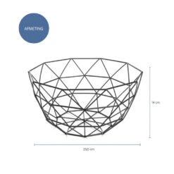 Afmetingen QUVIO Fruitschaal diamantvorm – Draadstaal – 25,5 x 14 cm (dxh)