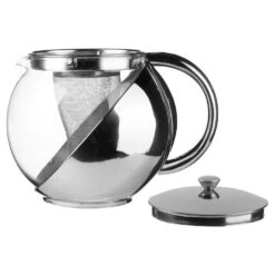 Theepot met filter voor losse thee/theezakjes van glas en rvs metaal. Bereid verse thee met deze glazen theepot met theefilter. De theepot is het beste te reinigen met handwas. Inhoud: ca. 1100 ml.