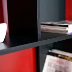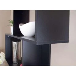 Boekenkast Eidal biedt een zee aan opbergruimte. De boekenkast heeft meerdere open opbergvakken en is gemaakt van spaanplaat in zwart. De spaanplaat is 16 mm dik.