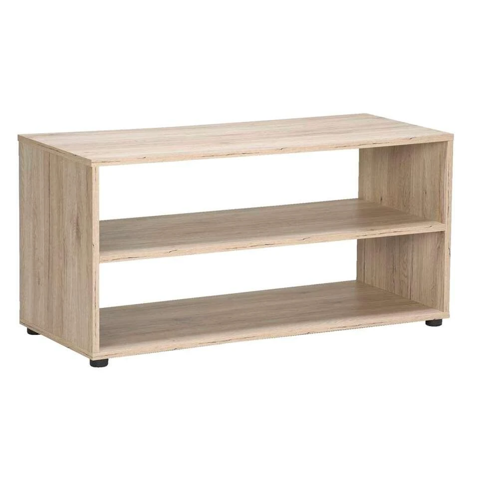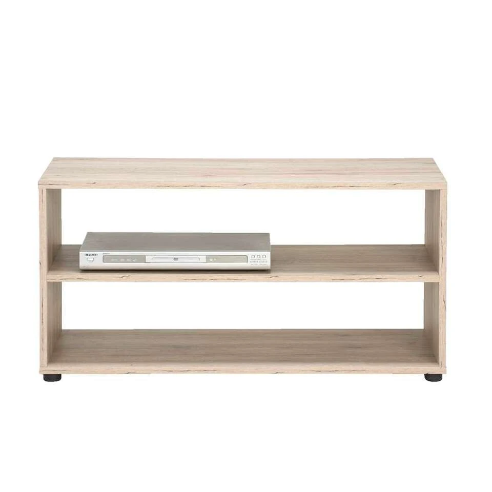 Tv-meubel Vancouver heeft een breedte van 90 cm. Voldoende ruimte voor middelgrote schermen. Het meubelstuk staat op 4 poten en heeft geen wand aan de achterzijde. Hierdoor kun je snel en eenvoudig bij alle kabels. Op de twee planken kun je al spullen overzichtelijk neerzetten. Bijvoorbeeld je DVD-collectie of favoriete games.
