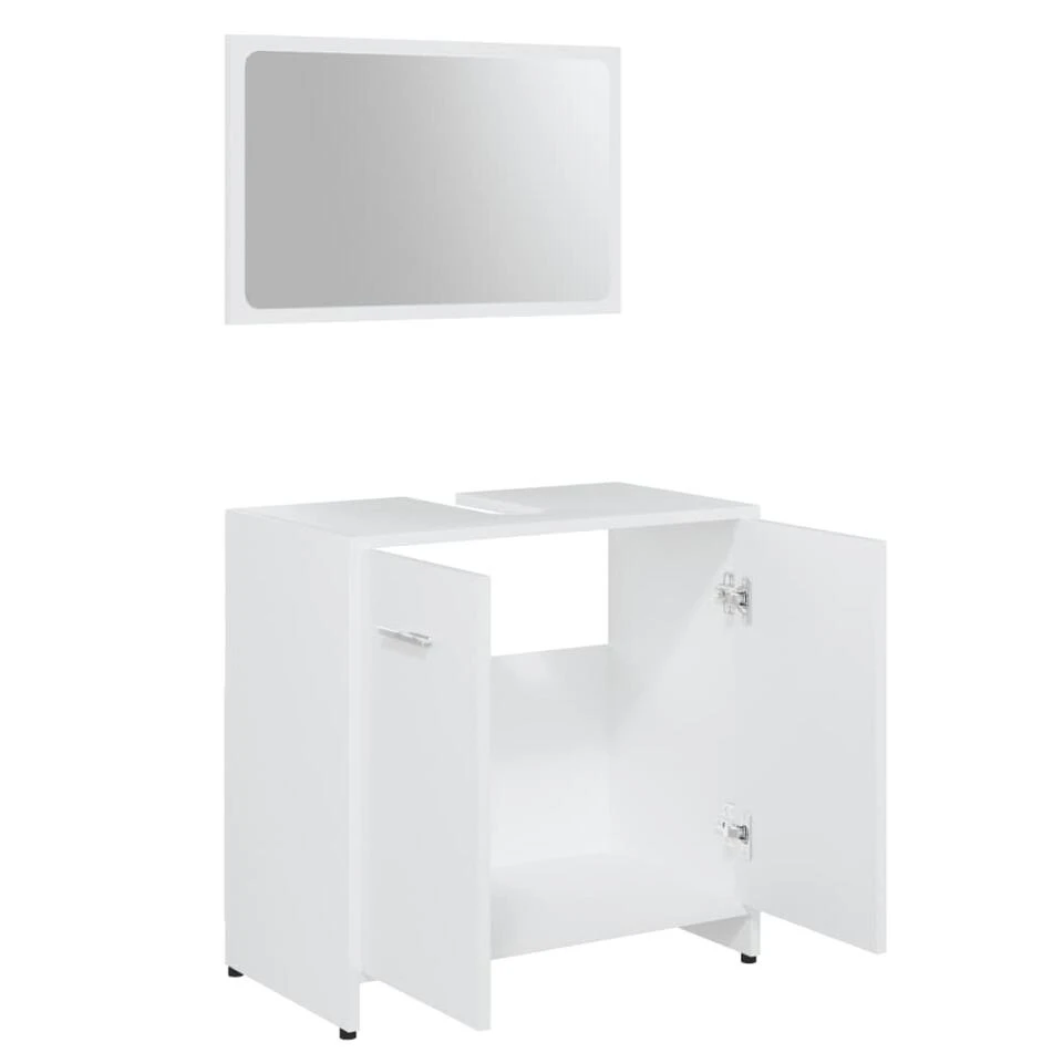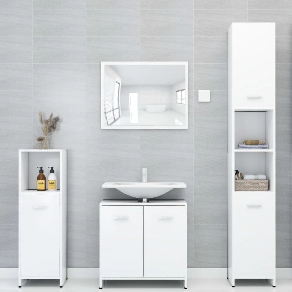 Deze stijlvolle meubelset, bestaande uit 1 hoge kast, 1 medium kast, 1 wastafelkast en 1 spiegel, heeft een prachtige, nette uitstraling en creëert extra opbergruimte in je badkamer.