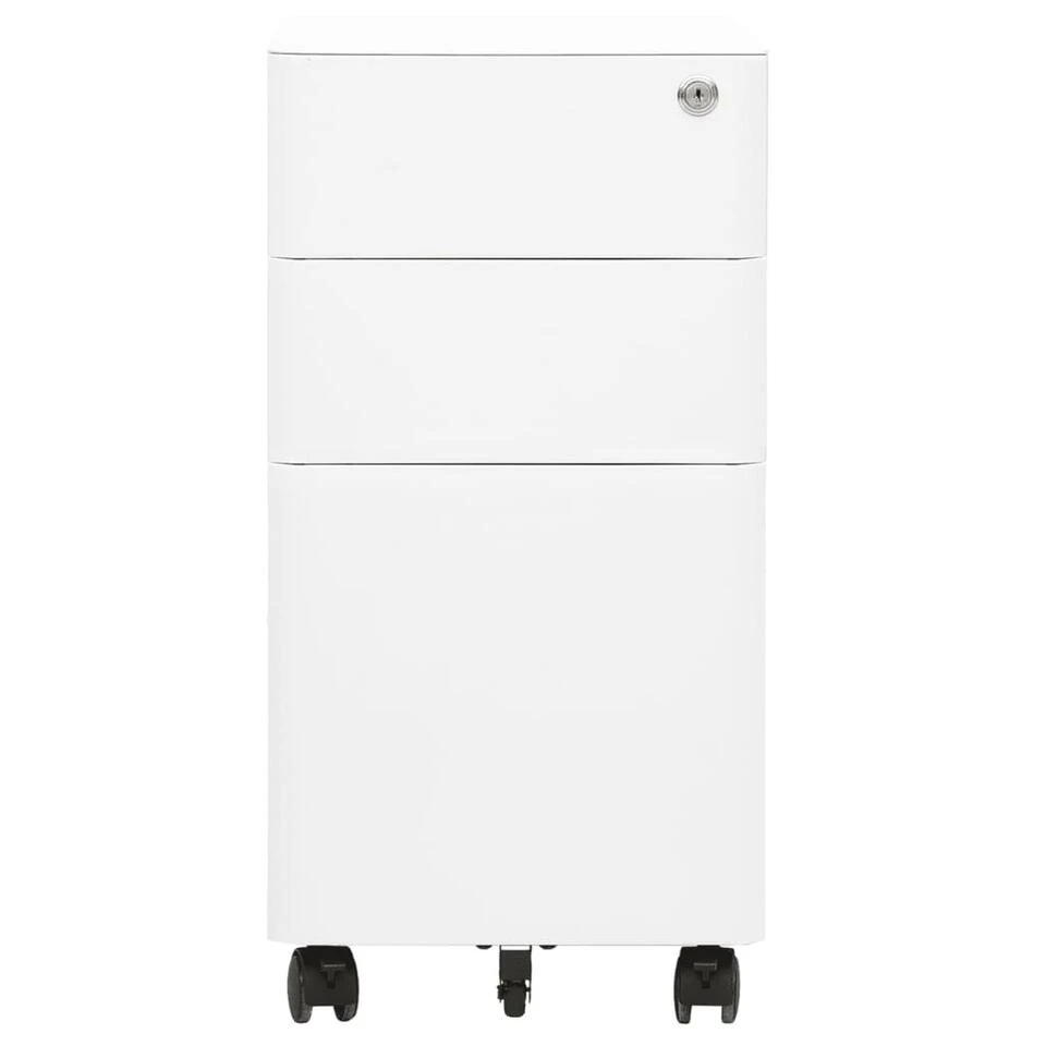 Deze ladekast is gemaakt van staal, waardoor hij zowel duurzaam als gemakkelijk schoon te maken is. Dankzij de 3 lades en het slot kan je dossiers netjes sorteren en veilig opbergen in deze archiefkast. Elke lade is tevens voorzien van 1 verwijderbare ophangstang, die geschikt is voor het opbergen van A4-hangmappen. Het verrijdbare kastje bevat ook een pennenbak, zodat je je bureaublad opgeruimd kunt houden. De 3-sectie kogelladegeleiders zorgen voor het soepel openen en sluiten van de lades. Zelfs bij een zwaardere belasting kunnen deze lades volledig worden uitgetrokken. De linker- en rechterhoeken van de kast zijn rond.