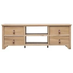 Deze televisiekast is gemaakt van paulowniahout en is een tijdloze aanvulling op je huis. Hij heeft 2 vakken en 4 lades voor het opbergen van snuisterijen en voor het plaatsen van multimedia-apparaten, spelconsoles en tijdschriften.
