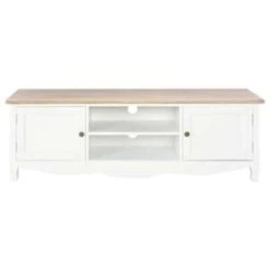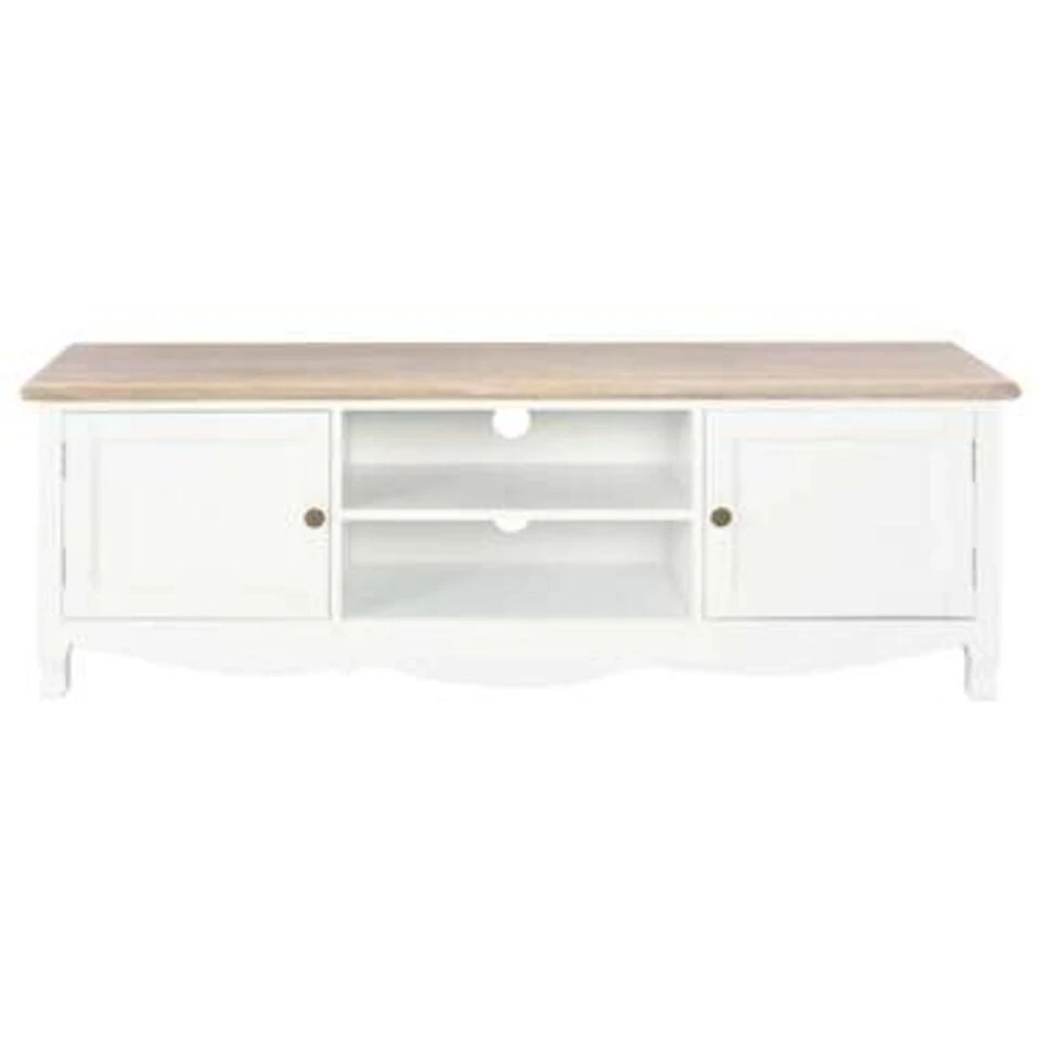 Dit moderne tv-meubel, gemaakt van MDF, massief grenenhout en een uniek paulownia fineer, is een tijdloze aanvulling zijn op je huis. Het heeft 2 deuren voor het opbergen van snuisterijen en 2 open vakken voor het plaatsen van multimedia-apparaten, spelconsoles en tijdschriften.