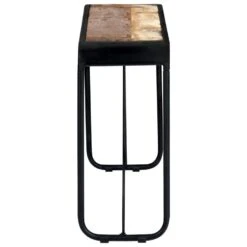 Deze retro haltafel is gemaakt van massief gerecycled hout dat afkomstig is van balken, vloeren en steunbalken van oude gebouwen. Dit hout bestaat uit verschillende houtsoorten, zoals grenen, teak, beuken, eiken, ceder, mangohout en acacia. Dit betekent dat het teruggewonnen hout de kenmerken van deze verschillende houtsoorten heeft. Gerecycled hout is al verouderd, verweerd en gedroogd en krimpt en buigt daarom niet. Deze prachtig ontworpen bijzettafel is zeer stabiel, duurzaam en opvallend. Het prachtige vakmanschap en de sierlijke houtnerven maken elk meubelstuk uniek en enigszins anders dan de rest. De gangtafel is eenvoudig te monteren.