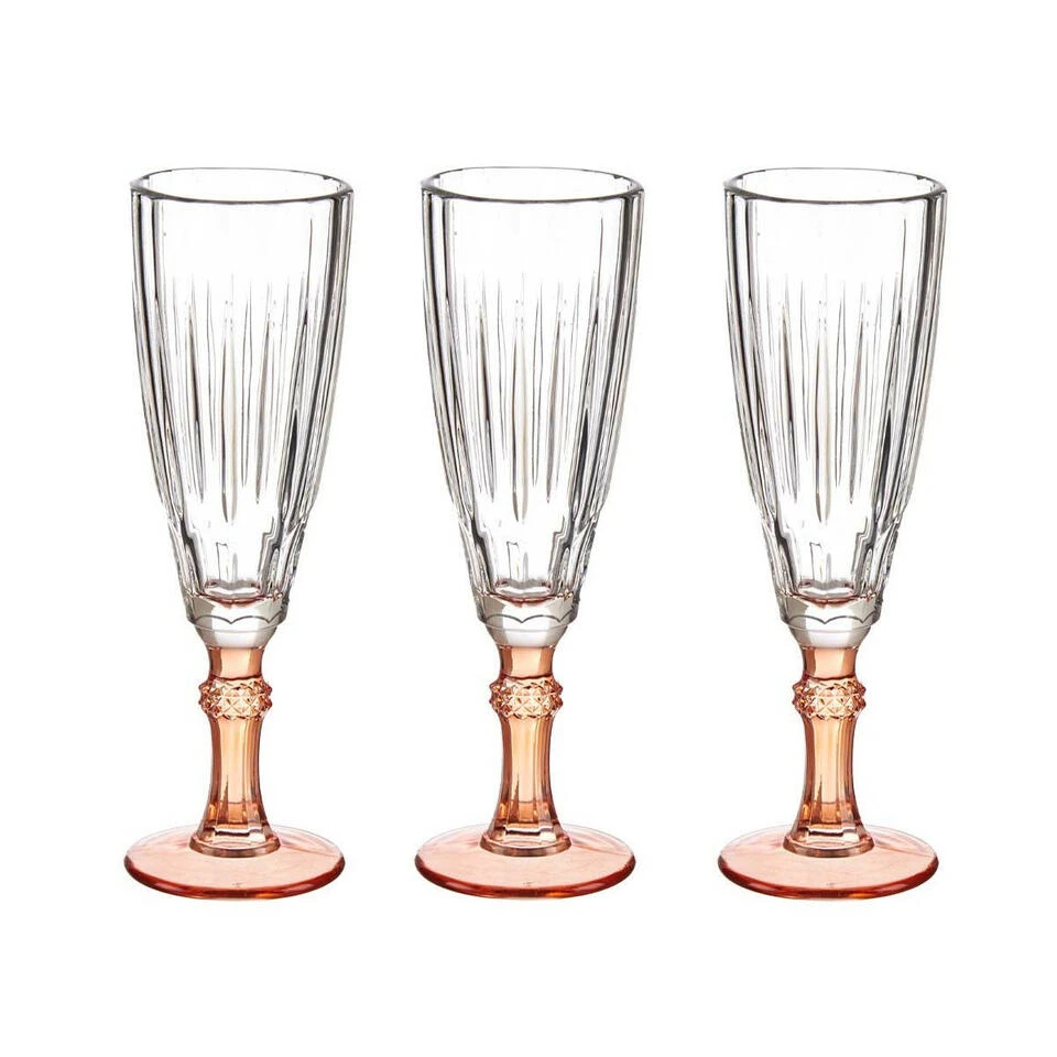 Luxe Exotic Collection Cava of Champagneglazen set van 6x stuks op oranje gekleurde voet 170 ml. Prachtige luxe uitstraling glazen collectie van Vivalto. De voet is licht oranje gekleurd in het glaswerk, de bovenzijde is transparant. Formaat per glas 6.5 x 20 cm. Gemaakt van kristal.