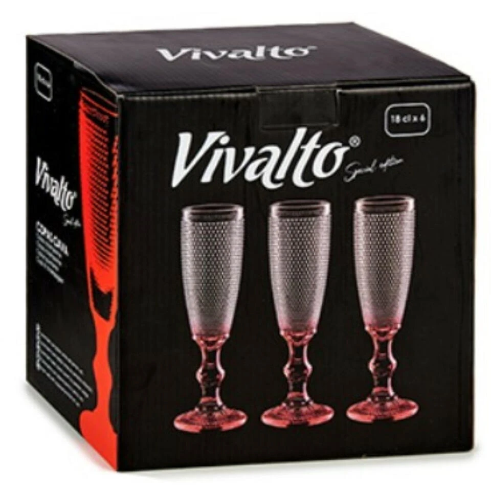 Luxe Monaco serie Cava of Champagneglazen set van 6x stuks op rode gekleurde voet 180 ml. Prachtige luxe uitstraling glazen collectie van Vivalto. De voet is rood gekleurd in het glaswerk, de bovenzijde is transparant. Formaat per glas 6.5 x 20 cm. Gemaakt van glas met schitterend relief in de glazen.